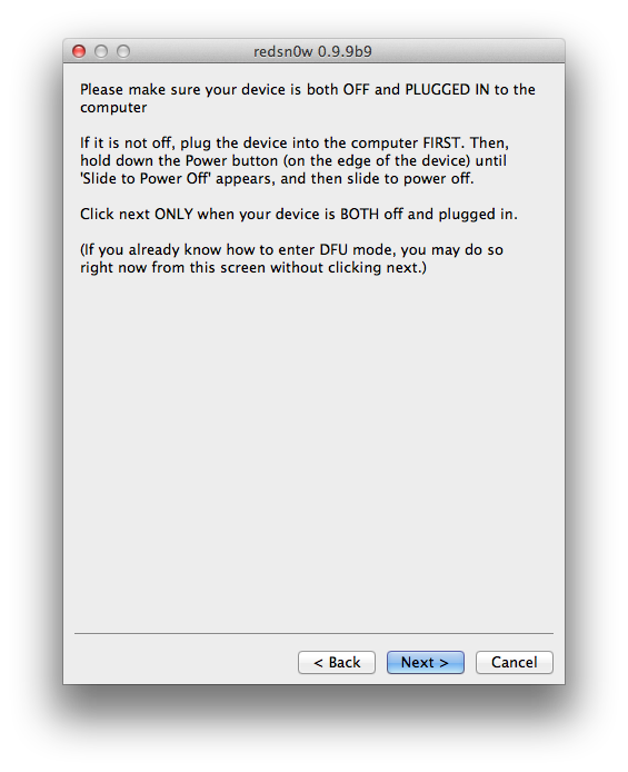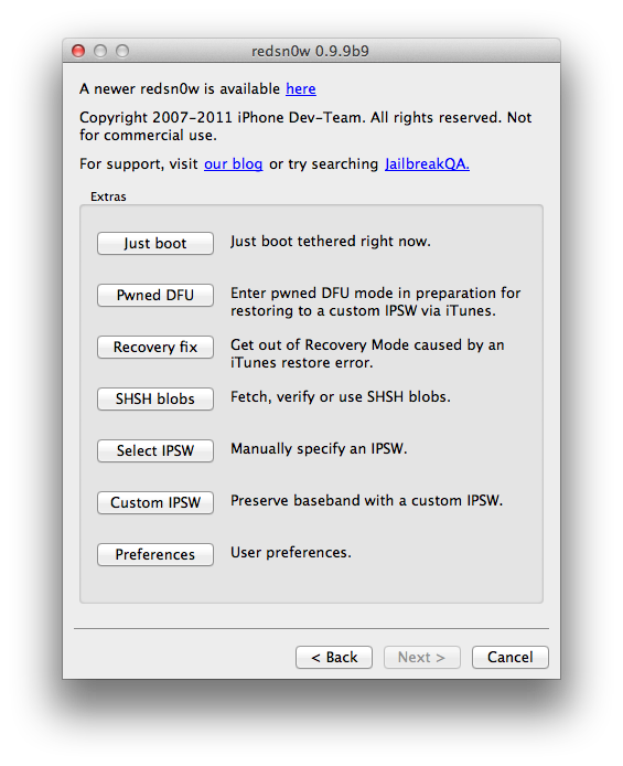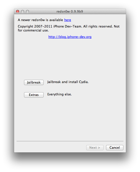 If your device is running stock iOS 5.0.1 then you can use download the latest Redsn0w 0.9.10b1 to for either Windows or Mac to give yourself an untethered jailbreak, instructions for which can be found below.