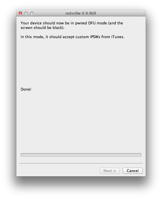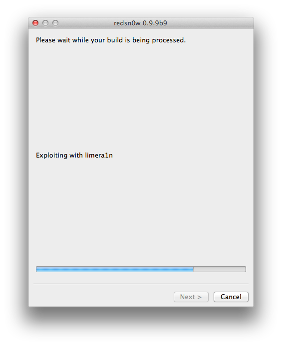 Step 3: Wait for Redsn0w to apply the full untethered jailbreak!